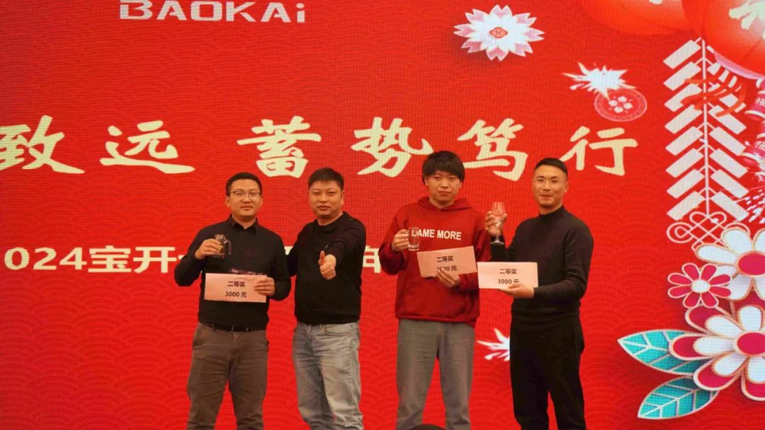 恰逢宝开成立十五周年之际,全体宝开人汇聚一堂,共襄盛举,团结一心,共赴新程。在火热的气氛下,宝开2024年度开工动员大会及晚宴圆满落下帷幕。